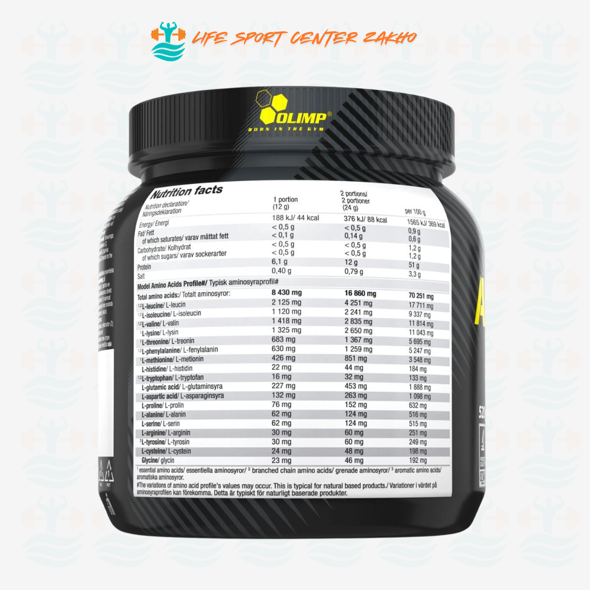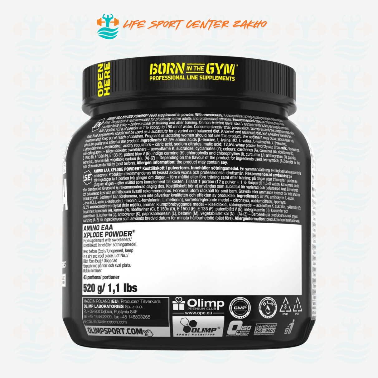 بەرهەمەکێ نایاب یێ ئەمینۆ ئەسیدان کو ب تنێ ل سەر بنەمایێ جۆرێن ئازاد و پاقژ یێن دەرمانسازی هاتینە دروستکرن. پێکهاتەیا OLIMP NUTRITION AMINO EAANABOL XPLODE ب شێوەیەکێ سەرەکی یا ئاڤاکرییە ل سەر ئەمینۆ ئەسیدێن بنەڕەتی (EAA؛ وەک: L-leucine, L-lysine, L-valine, L-isoleucine, L-threonine, L-phenylalanine + L-tyrosine, L-histidine, L-cysteine + L-methionine, L-tryptophan).
